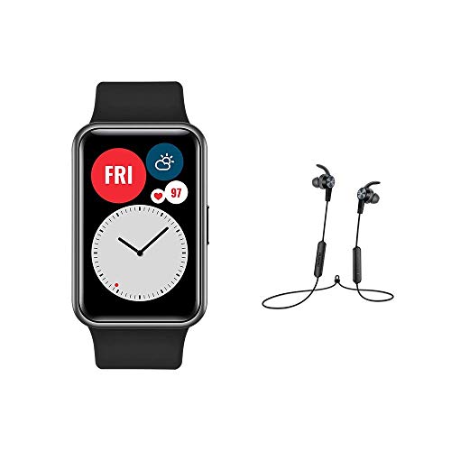 HUAWEI WATCH FIT Montre Connectée + Ecouteurs AM61, Boitier en métal, écran AMOLED de 1.64″, 10 Jours D’autonomie, 96 Modes D’entraînement, GPS Intégré,SpO2, Capteur de Fréquence Cardiaque, Noir