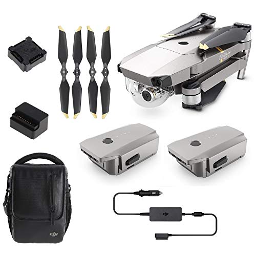 FLY MORE KIT : Le kit comprend 2 Batteries de Vol Intelligentes, 1 chargeur allume-cigare, 1 station de charge de batterie, 1 adaptateur pour batterie externe, des hélices à faible bruit et un sac