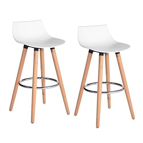FURNITURE-R France Lot de 2 tabourets de Bar en Bois de chêne Massif et Plastique PP Blanc