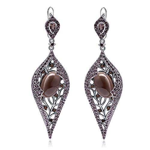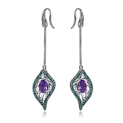 D&XQX Naturel Amethyst Peridot Gemstone Boucles d’oreilles Longues 925 Sliver Goutte Vintage Palais Boucles d’oreilles…